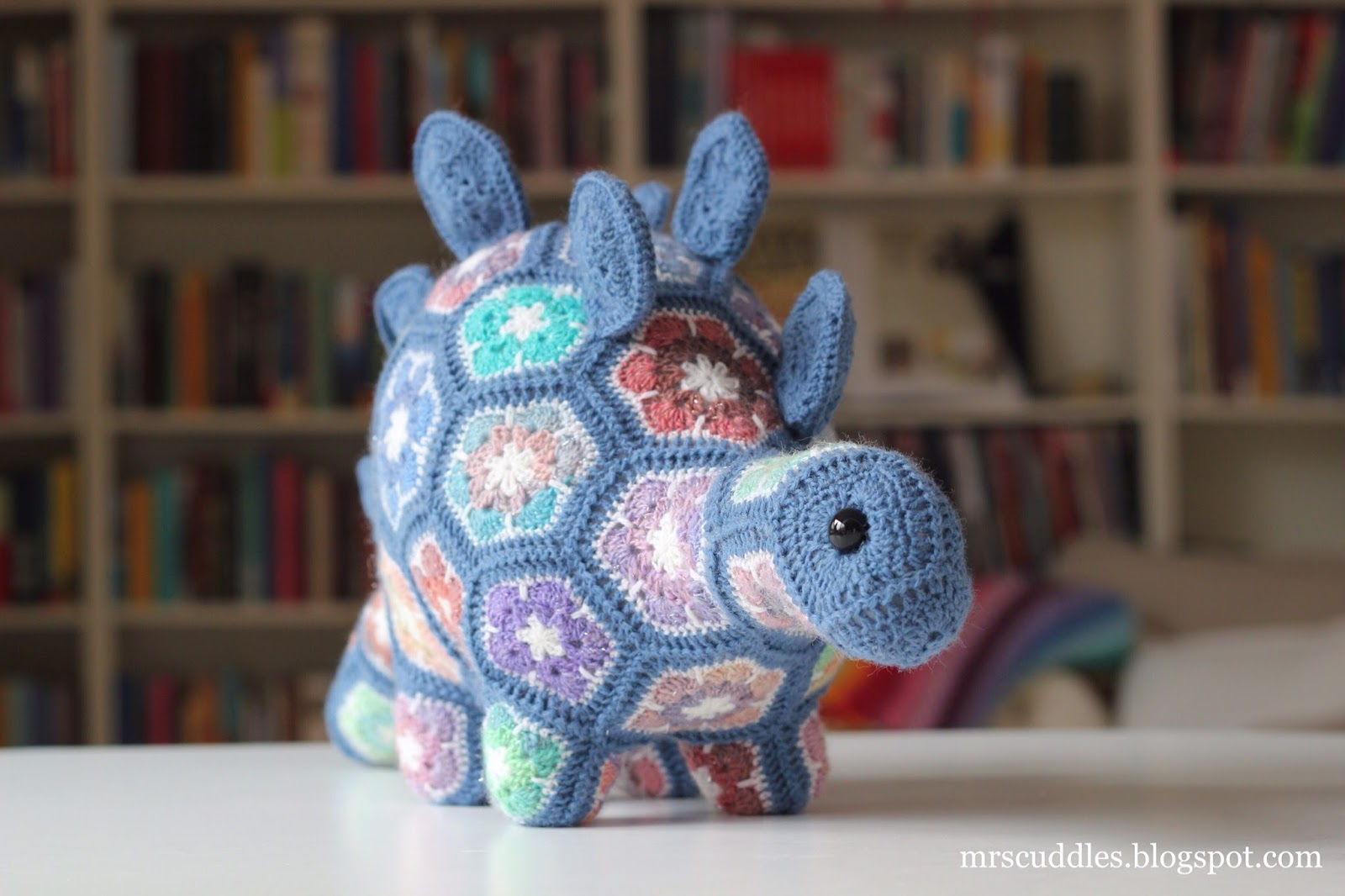 Takže můj stegosaurus je takový malý postižený chudáček s hlavičkou stočenou do strany. Pokud budu dělat dalšího (a že se mi pekelně líbí ta barevná kombinace u návodu na šestiúhelník ze začátku článku), budu ho kompletovat pěkně postupně!